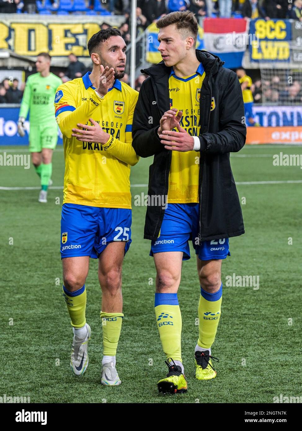Leeuwarden Mimoun Mahi Von Sc Cambuur Roberts Uldrikis Von Sc Cambuur Haben Die Nase Voll Von Dem Verlust Wahrend Des Niederlandischen Premier League Spiels Zwischen Sc Cambuur Und Sc Heerenveen Im Cambuur Stadion Am